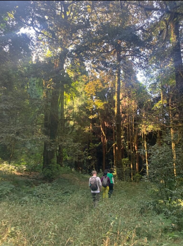 - Short halts along the trail to take in forest sounds, birdsong, and views